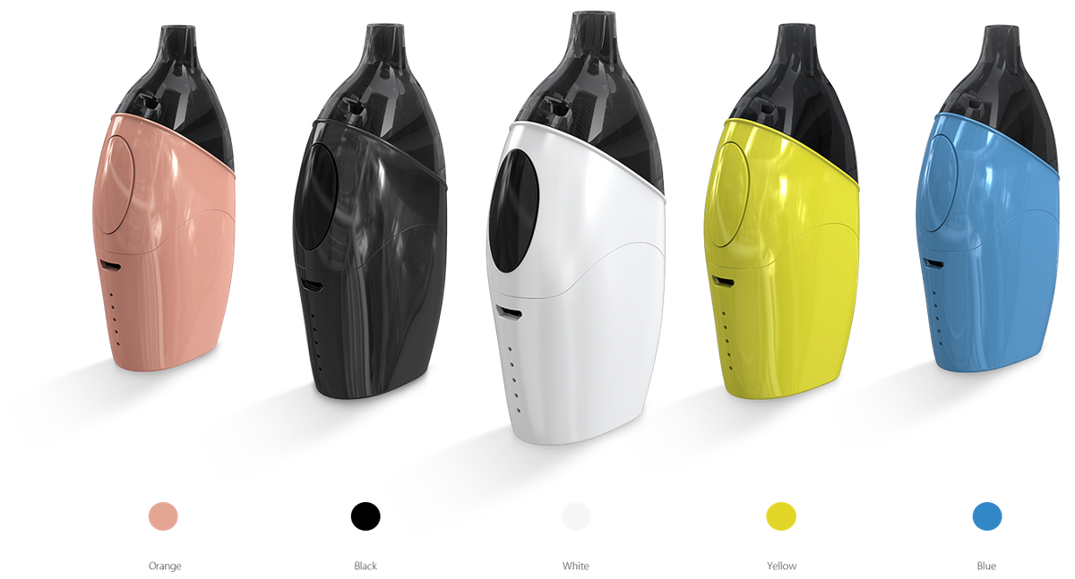 Pods: ultra simples, ultra compacts (une épaisseur similaire aux smartphones les plus fins et des dimensions très réduites), un système de cartouches intégrant la résistance (1.2 ohm), adapté à l'inhalation en deux temps...